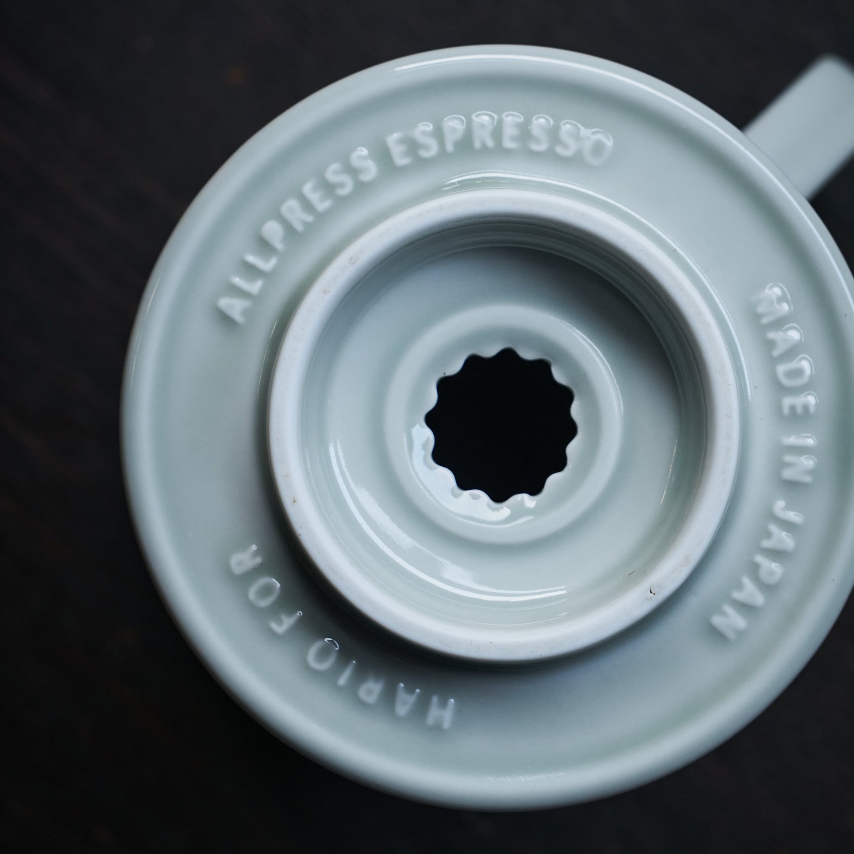 東京ロースタリー&カフェの淡いタイルの色と、産地で乾燥させたコーヒーからインスピレーションを得て生まれたHARIO × Allpress V60の限定モデルをぜひお楽しみください。
